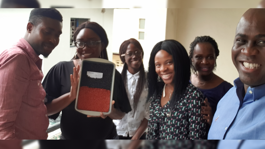 On 9th August 2019, the Sage Grey Team successfully manufactured the First Crumb Rubber Tile “Adam” at the Office in Victoria Island Lagos