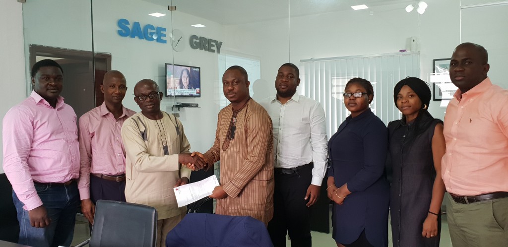 L-R : Mr. Jimmy Adelawna ( Secretary MDAN), Mr. Olajumoke Gbolahan (Treasurer, MDAN), Mr. Kayode Onasanya (Chairman, MDAN), Mr. Ayo Odulaja (Group Head, Sterling Bank Plc), Temitope Sotuminu ( Analyst ,Sage Grey), Oluwatunmise Rotibi (Analyst ,Sage Grey), Damilola Adebiyi (Analyst, Sage Grey) and Temitope Runsewe (Managing Director, Sage Grey)